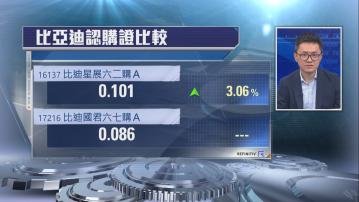 法興銀行證券上市產品銷售部董事周翰宏指,比亞迪拆細後,股價走勢偏弱,目前120元水平除咗係100天線,亦係關鍵位置,造好嘅投資者要留意,股價一旦守唔住100天線,下個支持位就係110元,甚至係100元左右。