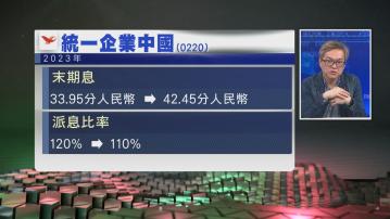 【Now財經台】統一企業中國(00220)全年多賺36.4%,末期息增至42.45分人民幣,股息率逾9%。