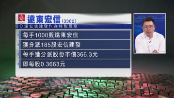 【Now財經台】遠東宏信(03360)擬以實物分派宏信建發(09930)作為特別息,每54股獲發10股宏信建發。