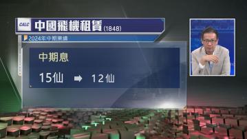 【Now財經台】中國飛機租賃(01848)上半年少賺34.5%,中期息減至12仙。