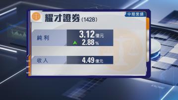 【Now財經台】耀才證券金融(01428)中期純利按年增長近3%至3.12億元,不派息。
