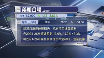 該行指,由於藥明合聯新項目增長較預期快,加上現有項目進展順利,上調集團今年至2026年收入預測1%至7%,經調整純利預測則上調最多約14%,並繼續看好藥明合聯高增長,以及毛利率的潛在改善空間,預期至2026年的4年純利複合增長率將逾60%,遠高於環球同業。