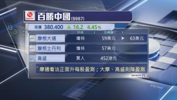 雖然其他大行暫時未有調整百勝目標價,但看法偏淡,並下調集團盈測。