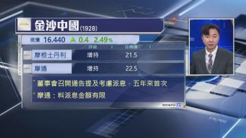 【Now財經台】大行預期,金沙中國(01928)或有機會恢復派息。