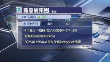 【Now財經台】新意網集團(01686)公布中期業績後,摩根士丹利維持評級及目標價不變。