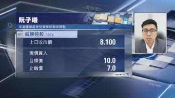 【Now財經台】華富建業證券投資策略聯席總監阮子曦推介威勝控股(03393)