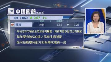 滙證相信,中央明確支持消費後,陸續有更多省市公布生育補助計劃,據國家衞生健康委員會2023年及去年底數據顯示,全國有23個省提供生育補助,認為嬰兒配方奶粉可直接受惠於補貼生育政策,但要扭轉低生育率仍是一個艱巨任務,估計每年最少要有500億元人民幣或以上補貼,才可帶動嬰兒配方奶粉需求增長10%,重申「持有」評級,但上調目標價至7.25元。