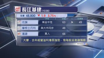 大摩指,長建去年經營溢利按年增速加快至10%至逾94億元,但派息遜預期,全年派息僅增2港仙至2.58元,低於過去3年每年增3港仙,該行估計,可能集團希望預留現金,為在英國市場進行併購做準備。