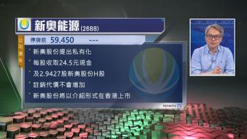 【Now財經台】新奧能源(02688)獲大股東新奧股份提出私有化,每股將收取24.5元現金,及2.9427股新奧股份H股,每股註銷價理論值80元,較停牌前溢價34.6%。