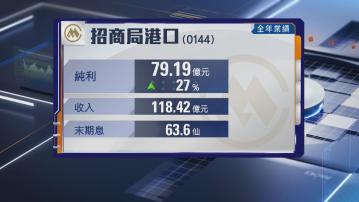 【Now財經台】招商局港口(00144)去年純利79.19億元,升27%,收入升4%,末期息派63.6港仙。