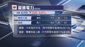 摩通指,龍源今年指引平淡,相信反映了大部分負面因素,包括政府補貼未見改善、去年電價的情況今年未必可以延續,以及再生能源市場表現較波動等。因此下調今明兩年盈測約10%,微降目標價至7.2元,維持評級「增持」。