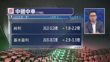 【Now財經台】中國中車(01766)發盈喜,預告第一季多賺1.8-2.2倍。