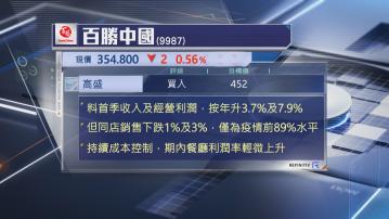 該行估計,百勝月底公布的第1季業績,收入將按年增長3.7%,經營利潤則年增長7.9%,雖然期內受農曆新年假期季節性因素帶動,不過,肯德基(KFC)及必勝客(Pizza Hut)同店銷售將按年跌1%及3%,僅回復至疫前約89%。