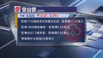 【Now財經台】金山雲(03896)折讓配股集資逾20億元,集資所得將用作投資升級及擴充基礎設施。