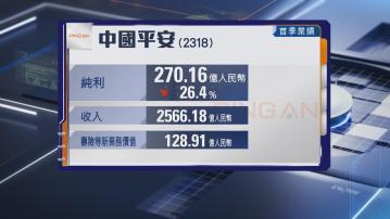 截至3月底止第1季度,平保純利逾270億元人民幣,收入按年跌近7%至逾2566億元人民幣,期內,壽險及健康險新業務價值按年升近35%。