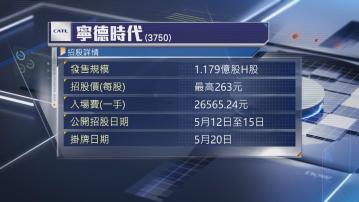 【Now財經台】全球最大電動車電池供應商寧德時代(03750)今日(12日)開始招股,入場費約26500元,值得留意的是,公司禁止美國境內投資者參與認購。