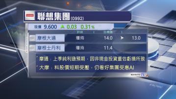 摩通指,聯想上季純利遜預期,主要受關稅及非現金投資重估虧損影響,若撇除一次性因素,上季核心純利符預期。