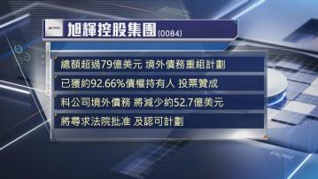 集團發公告,指總額逾79億美元的境外債務重組計劃,已獲得逾90%債權持有人支持,債務重組計劃獲批後,預期集團境外債務將減少約52.7億美元,下一步將尋求法院批准及認可計劃。