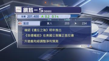 滙證指,網易確認明年推出新遊戲《遺忘之海》,涵蓋PS5、電腦和手機平台,另外1款遊戲《命運崛起》在美國的公測獲正面反應,而這款遊戲已經獲得中國的遊戲許可,滙證看好網易遊戲收入,調高2026至27年度遊戲收入預測,並升經調整淨利預測7%至16%,相應調升目標價至234元,評級維持「買入」。