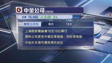 大摩將於周三(18日)及周四(19日)在上海舉行陸家嘴論壇,預期將會公布更多市場改革措施,利好券商股。