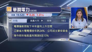 該行又相信,電價偏軟將加劇供應過剩情況,下調潤電今、明兩年收入預測1%至2%,每股盈利預測則下調9%至12%,並下調評級,但維持目標價19.5元不變。