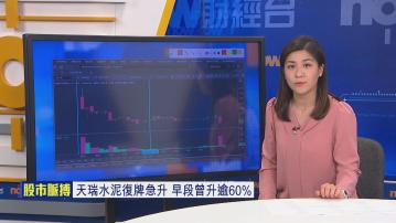 【Now財經台】停牌逾兩個半月嘅天瑞水泥(01252)今日(23日)復牌,股價高開逾62%後,升幅一度擴大至66%,高見0.45元,成交股數較過去100日同時段平均大增31倍,成交金額逾5800萬元。