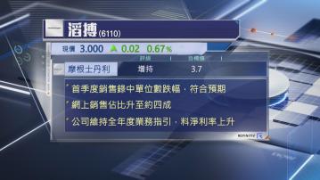 【Now財經台】摩根士丹利表示,滔搏(06110)首季度銷售符預期。