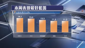 本周表現最佳藍籌,依次為新東方(09901)升14.1%、中芯國際(00981)升13.5%、阿里健康(00241)升12.2%、恒隆隻集團(00010)升11.3%、快手(01024)升11.2%。