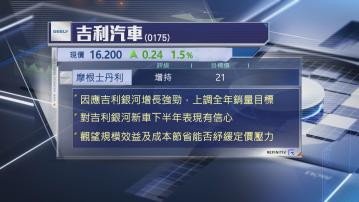 【Now財經台】吉利汽車(00175)公布6月銷售數據後,上調全年銷量目標,摩根士丹利對集團下半年表現有信心。
