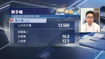 【Now財經台】華富建業證券投資策略聯席總監阮子曦推介周大福(01929)