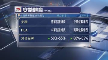 安踏品牌零售額於第2季按年錄低單位數增長,FILA品牌錄中單位數增長,其他品牌則按年增長50%至55%。