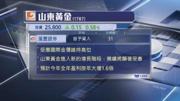該行指,國際金價持續高企,山東黃金因新項目投產及加快海外擴張,開始步入新增長階段,綜合上述因素,今年業績有望錄得顯著增長,估計在強勁的銷量及利潤率改善等帶動下,今年盈利將按年大升1.6倍。