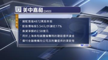 【Now財經台】美中嘉和(02453)計劃折讓配股,集資淨額近2.6億元。