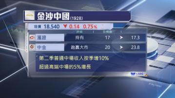 滙證指出,金沙第2季普通中場收入按季增長10%,高於高端中場的5%,情況跟行業整體相反。