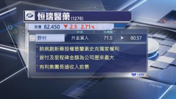 野村指,今次是集團今年第3個授權項目,亦是公司至今最大首付及里程碑金額項目,反映恒瑞研發能力逐步獲國際認可,上調集團收入預測,又認為授權收入長遠前景亮麗,調高集團評級至「買入」,目標價亦上調至80.57元。