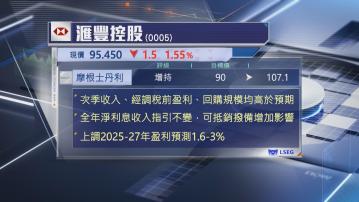 大摩又相信,若滙控淨利息收入可維持增長,可抵銷撥備增加的影響,而在本港銀行同業拆息(HIBOR)回升下,該行預期,滙控全年淨利息收入指引可望達標,並上調2025至2027年盈利預測1.6%至3%。