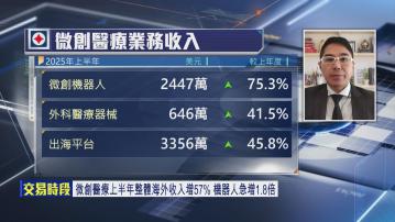 【Now財經台】微創醫療(00853)公布中期業績,微創機器人收入大增77%,當中,海外收入大增1.8倍,協助境內產品進軍海外市場的平台收入更有50%以上增長,未來增長動力能否靠機器人「出海」及「出海」平台發揮正面效應?
