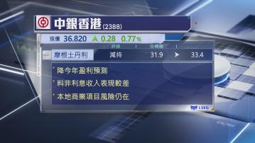 雖然大摩下調中銀今年盈利預測,但上調未來兩年盈利預測,儘管預期今年淨利息收入可受惠於銀行同業拆息(HIBOR)回升,但非利息收入或受累較低的交易及保險收入,估計明年波動性將會較低,相關收入將回復正常表現。