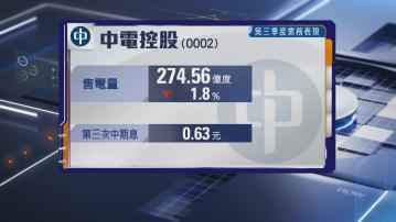 【平均氣溫較低】中電首3季售電量跌1.8% 派息0.63元