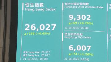 【重上26000關】恒指升168點 泡泡瑪特逆市瀉8%