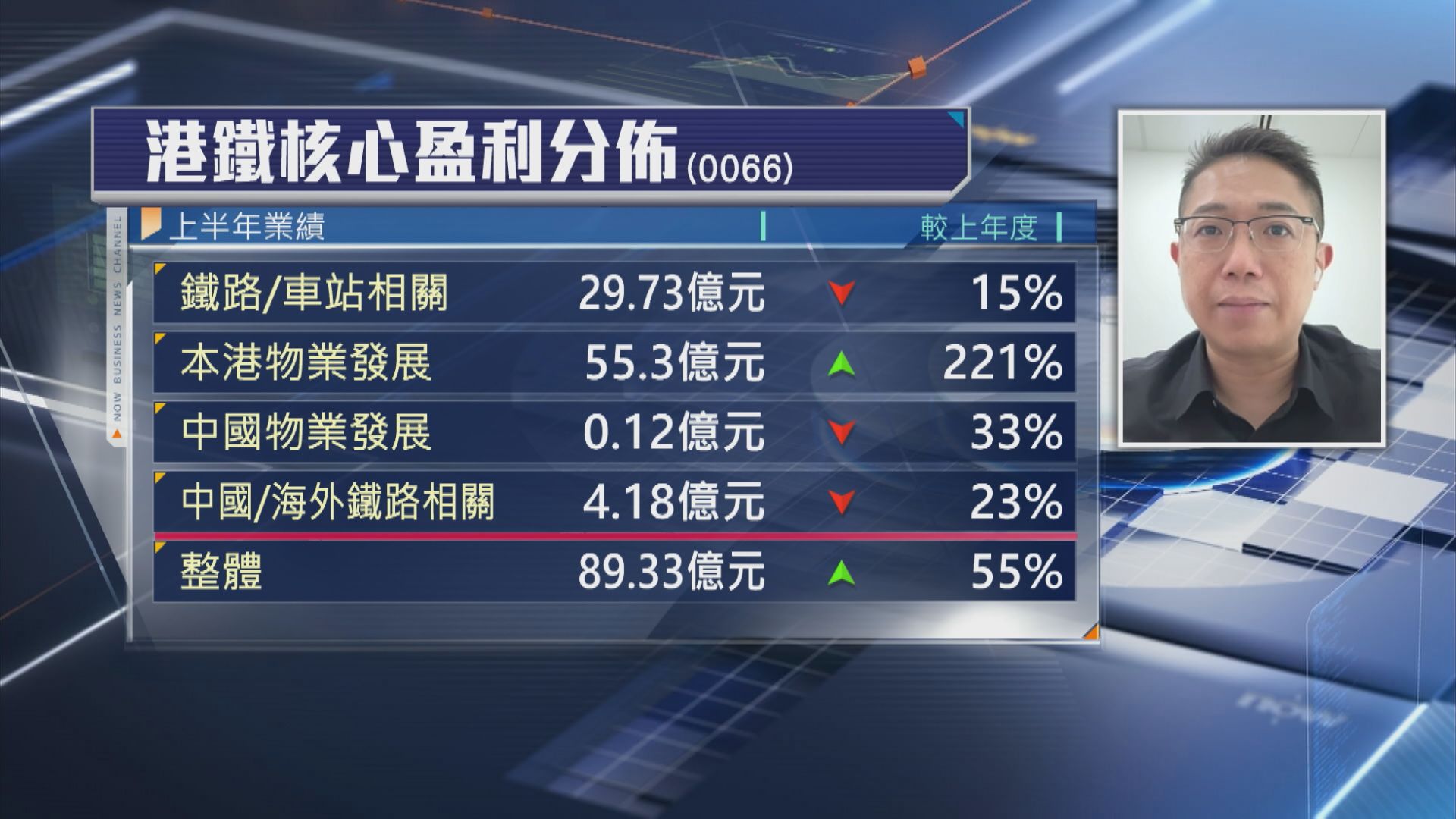 【Now財經台】港鐵公司(00066)今日股價輕微高開0.2%,一度升逾2.7%,高見30.14元,公司上半年業績核心盈利大升55%至89億元,受惠物業發展項目貢獻的55億元,反而鐵路相關業務盈利跌15%,發展中項目除屯門南延綫外還有5個,現時市場對南延綫反應不錯,能為未來核心業務提供動力嗎?